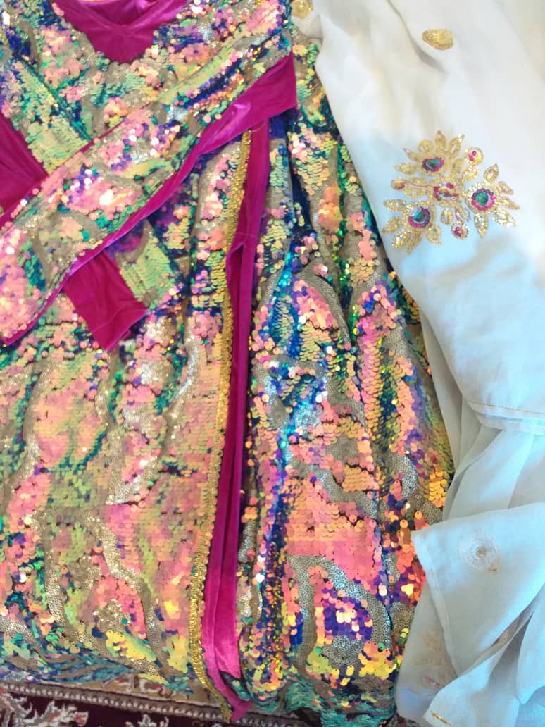 زنان بختیاری برای شلوار قری از پارچه های مخمل و پولکی دار استفاده می کنند. آنها معمولازیر شلوار قری اصلی چند دامن دیگر می پوشند که باید هم سبک باشند و هم کار حجم دادن به دامن را انجام دهند.